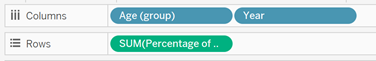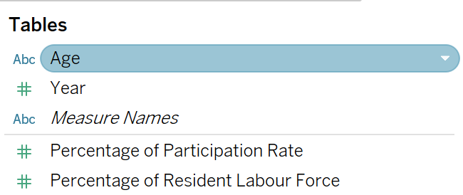 Drag [Percentage of Resident Labour Force] to Columns and right-click to select Dual Axis from the drop-down.