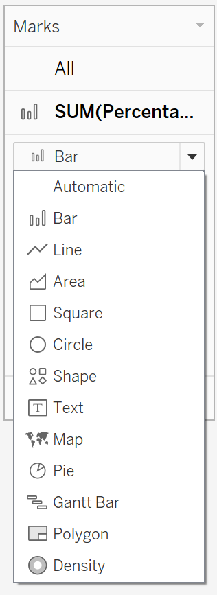 On the Marks card, click the Marks Type drop-down and select Line.