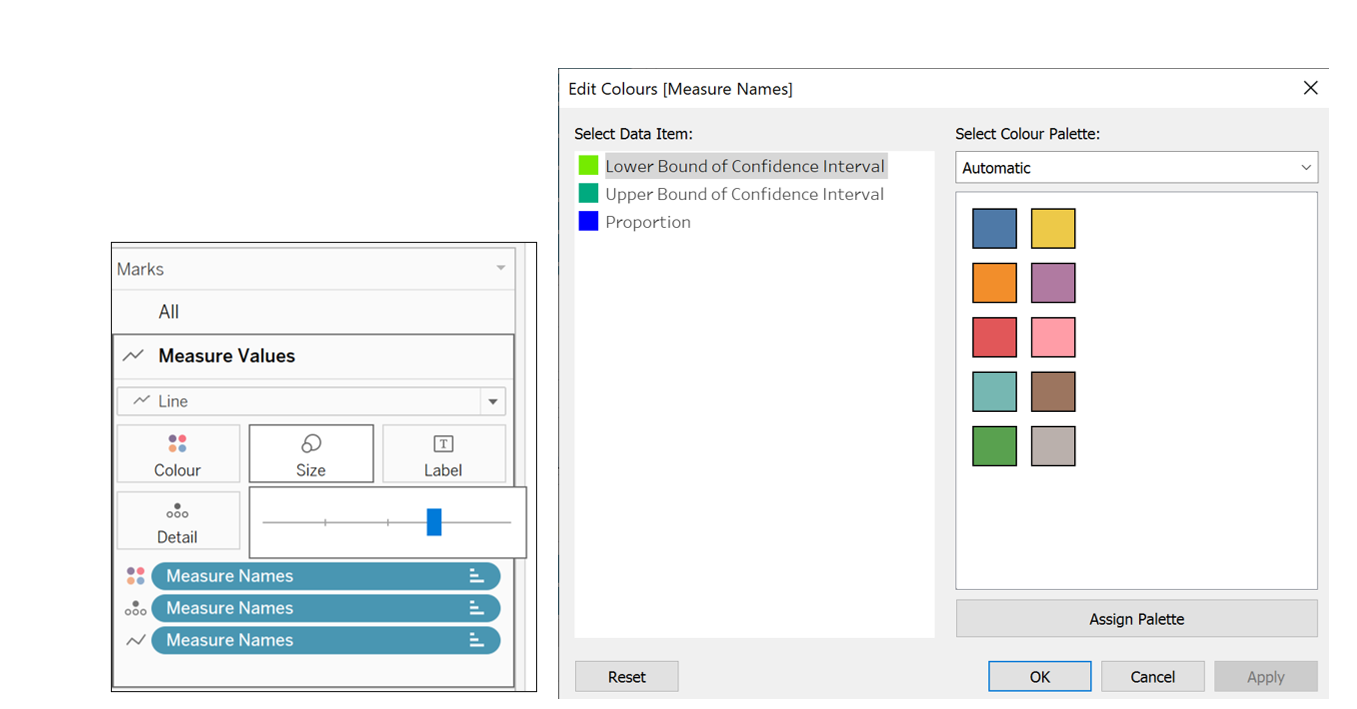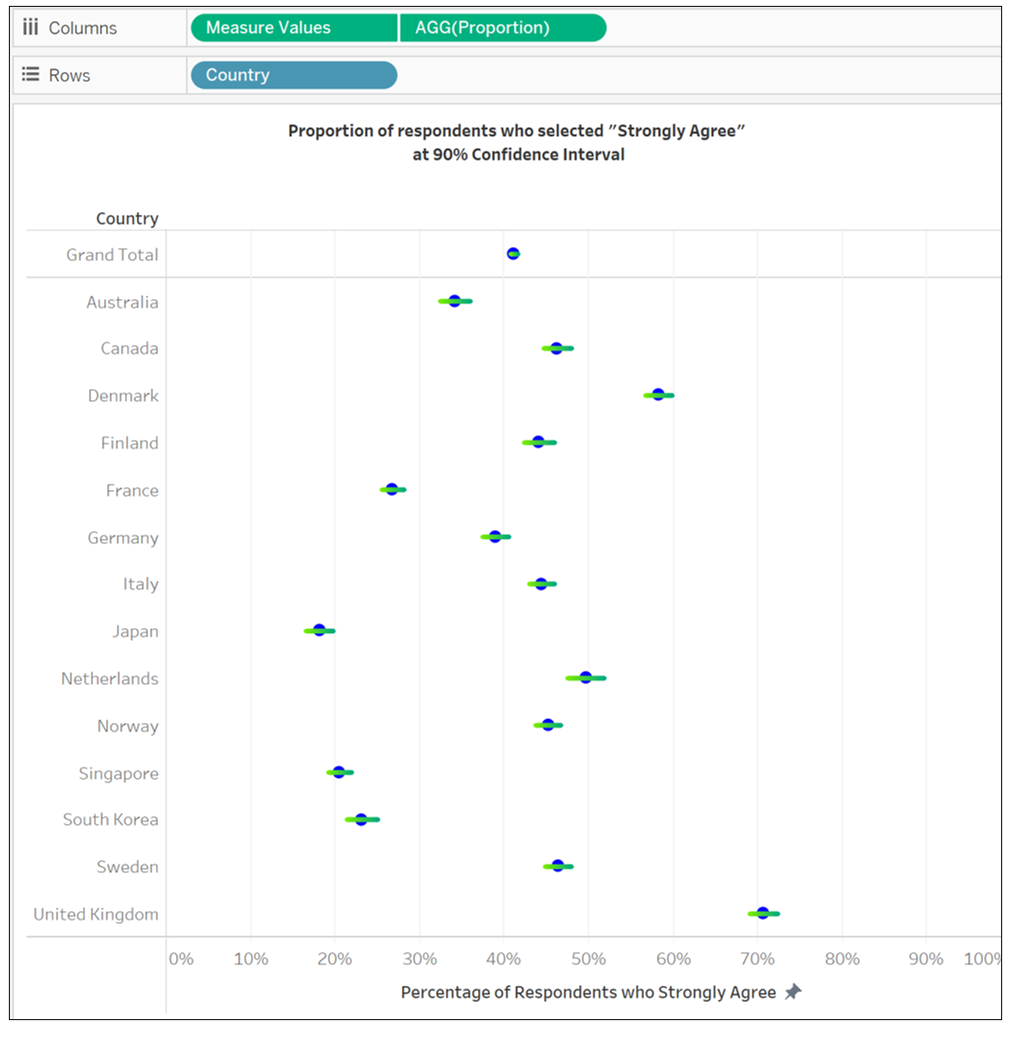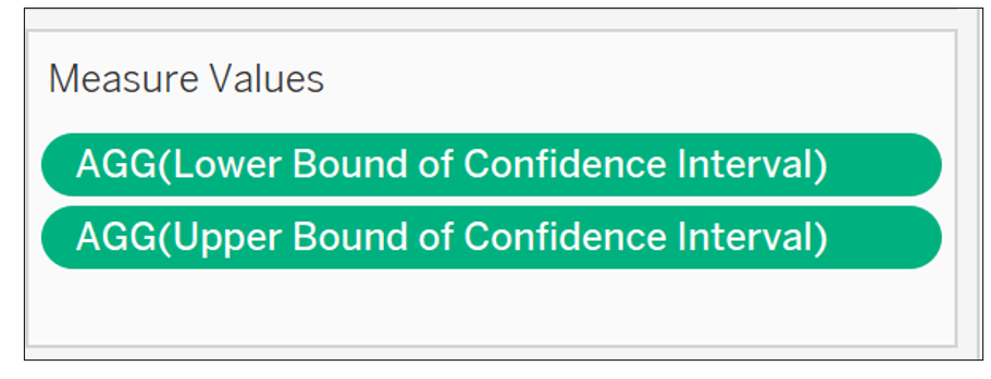 Create the calculated field “Upper Bound of Confidence Interval” with calculation as follows: [Proportion]+[CI]*[Proportion_SE]