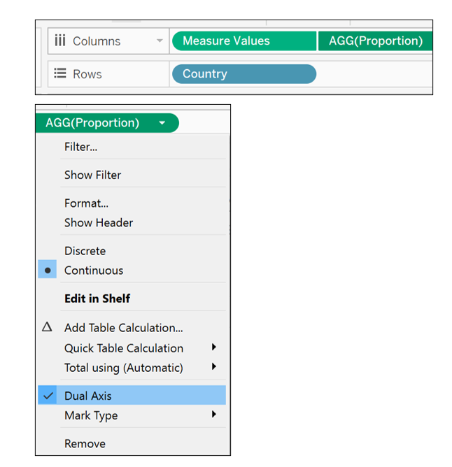Create the calculated field “Lower Bound of Confidence Interval” with calculation as follows: [Proportion]-[CI]*[Proportion_SE]