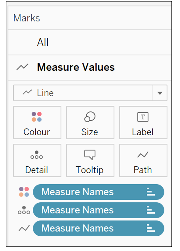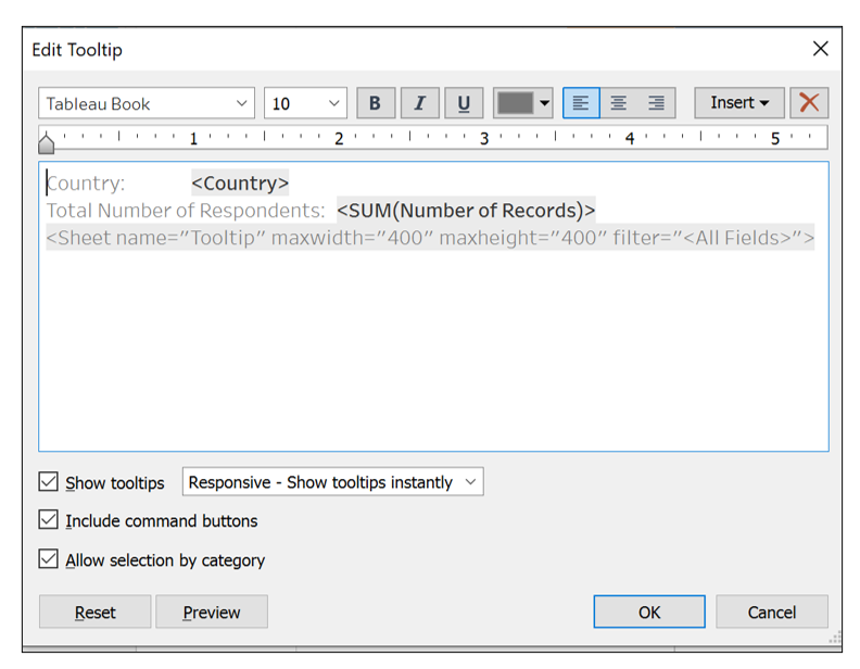 Create a visualization in a target worksheet view to serve as the Visualization in Tooltip. Rename the Worksheet as ‘Tooltip’.