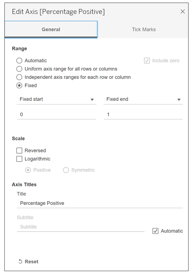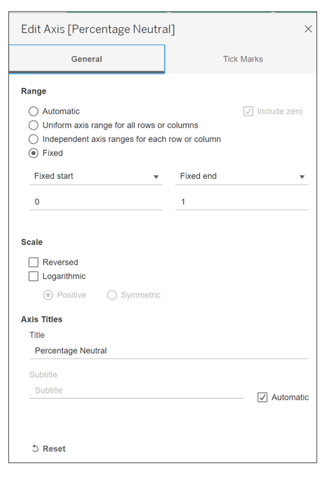 The positive and negative percentages are presented using a synchronized dual axis chart. The neutrals are a separate chart that is placed next to this dual axis chart.