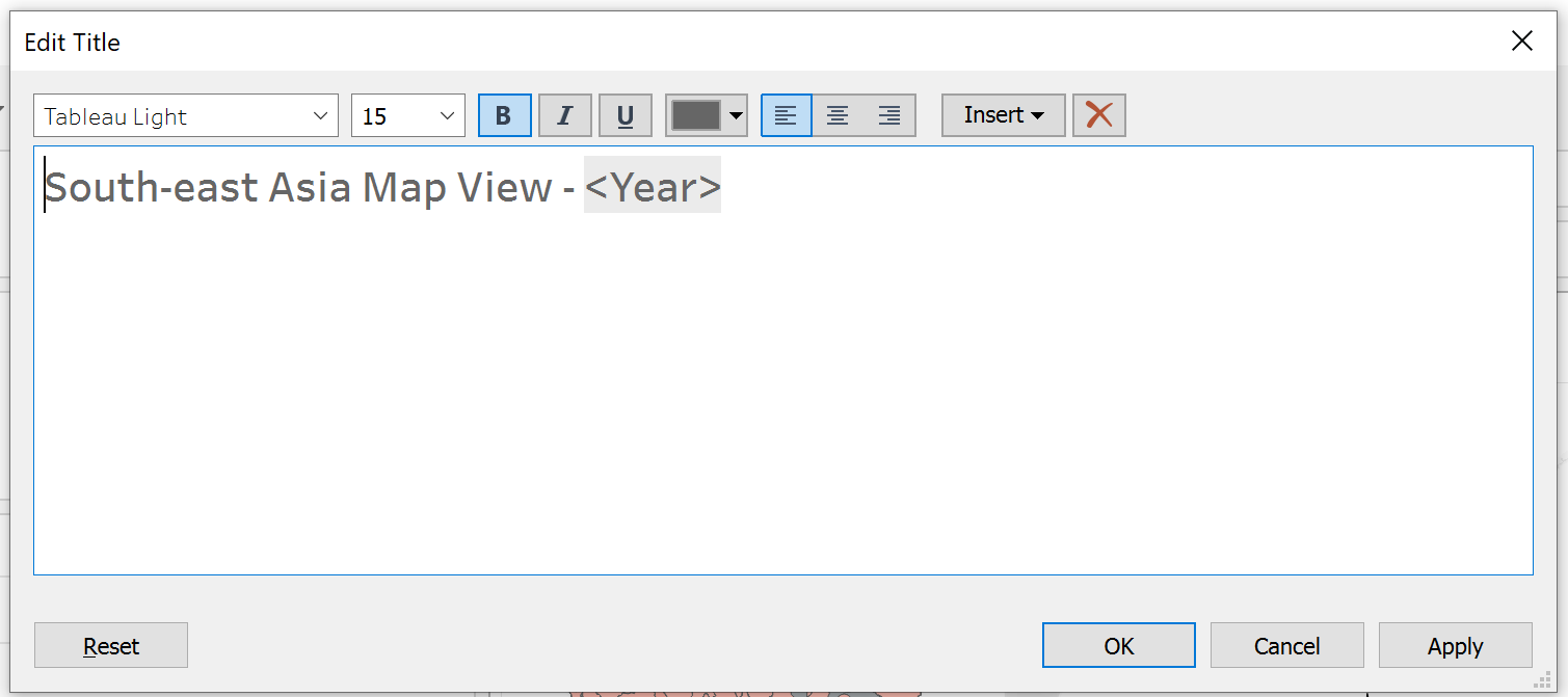 Edit the title of the Dashboard to “Armed Conflicts in South-east Asia”.