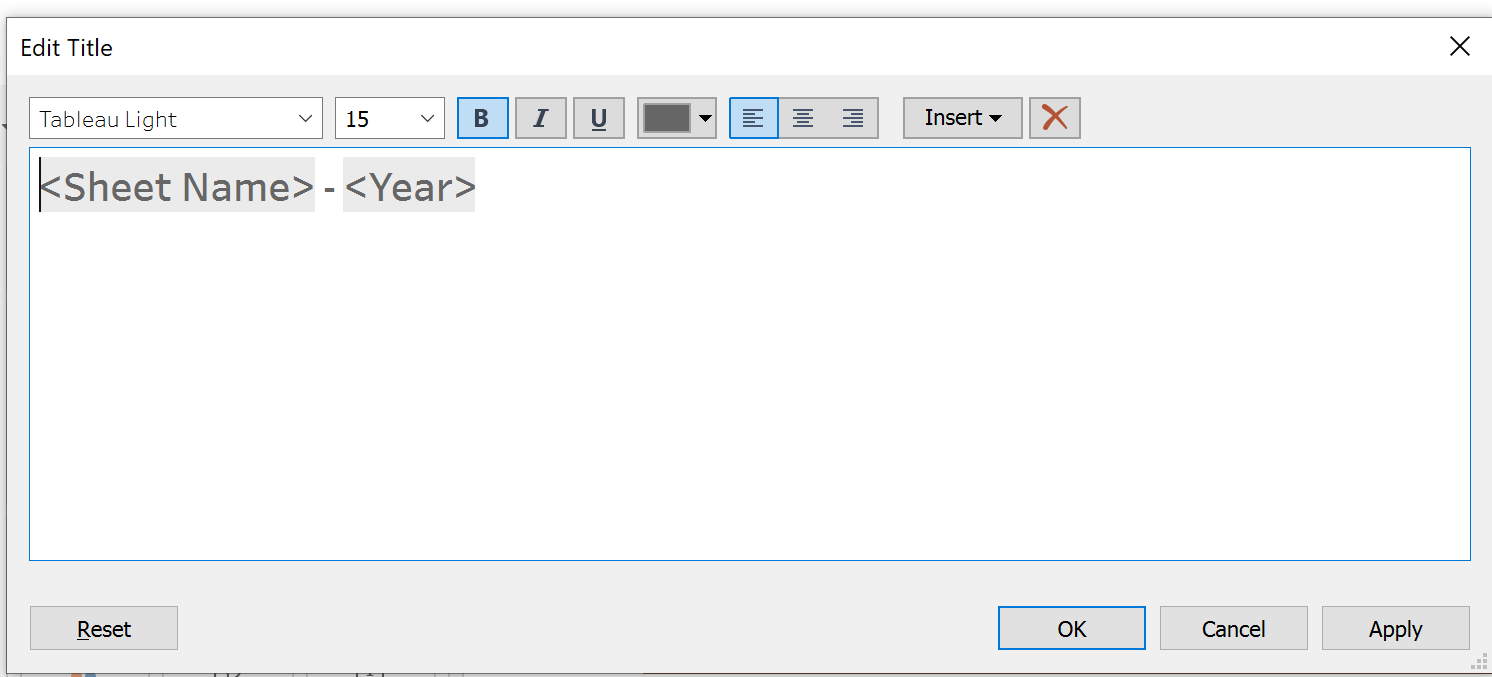 Create dynamic title that changes based on year as follows: