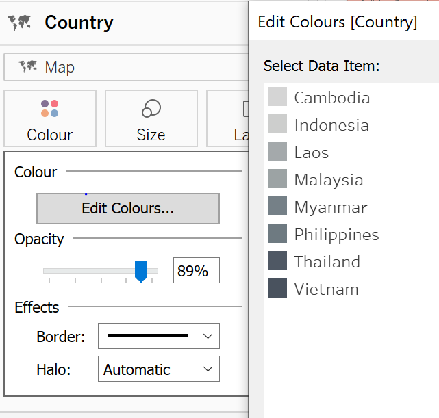 Click on Colour and select sequential Grey tone. Adjust the Opacity to 89%.