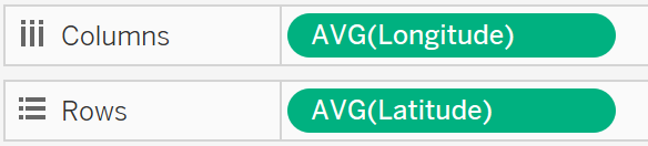 In the Data pane, drag [Country] onto the Marks card and drag [Longitude] to the Columns shelf and [Latitude] to the Rows shelf.