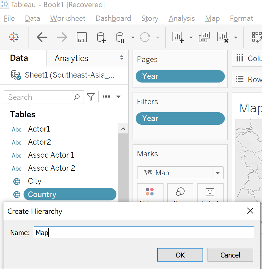 In the Create Hierarchy dialog box, name the hierarchy as Map and click Ok.
