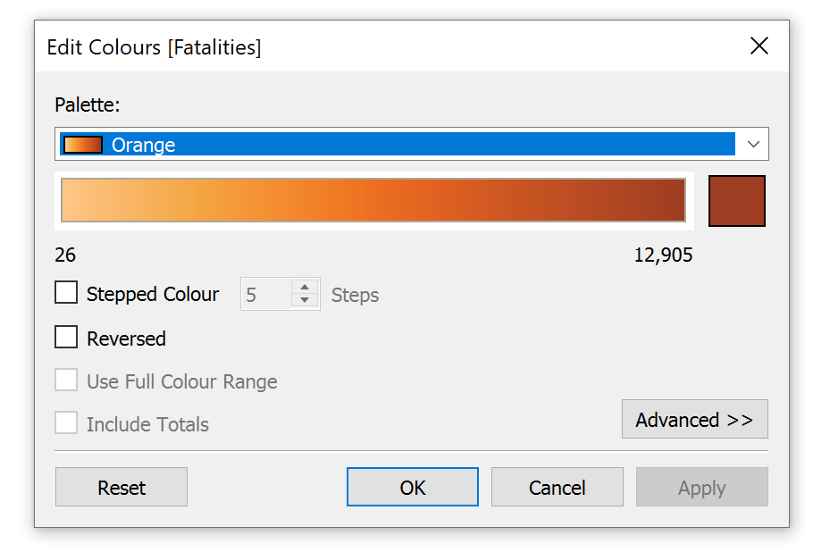 Click on Colour and select sequential Orange tone.