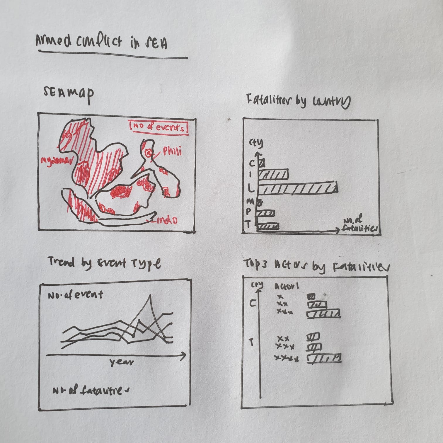 There is no indication of the total number of events reflected on the second chart “Armed Conflict Event by Type”. Hence, unable to provide user with an idea about the magnitude of every value compared to that of the totals.