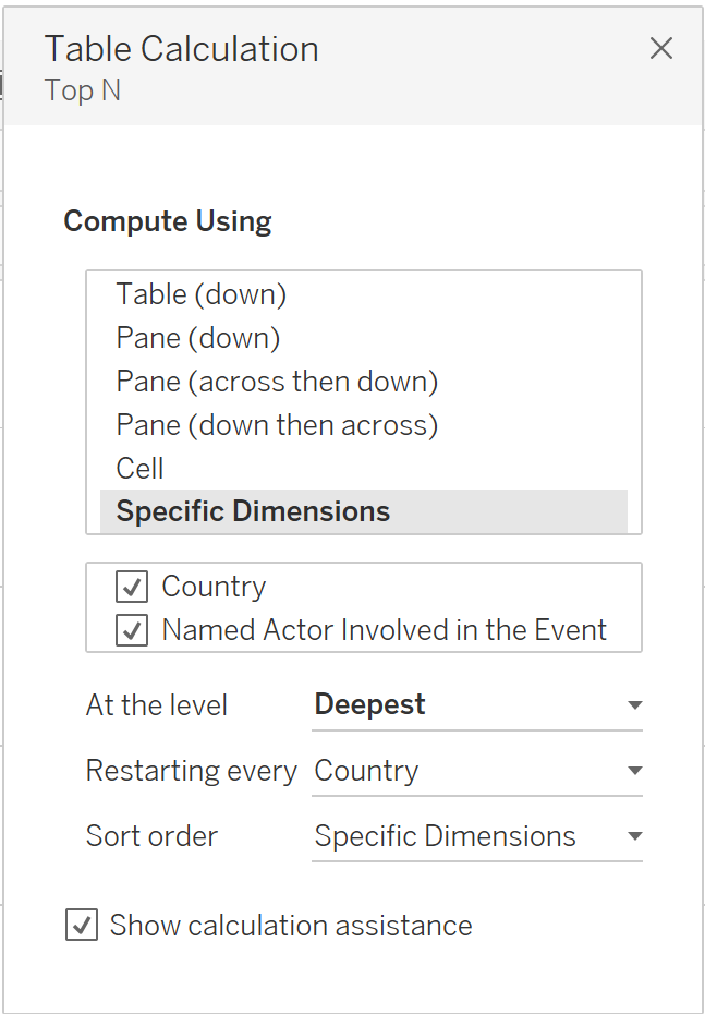 Under Compute Using, select Specific Dimensions.